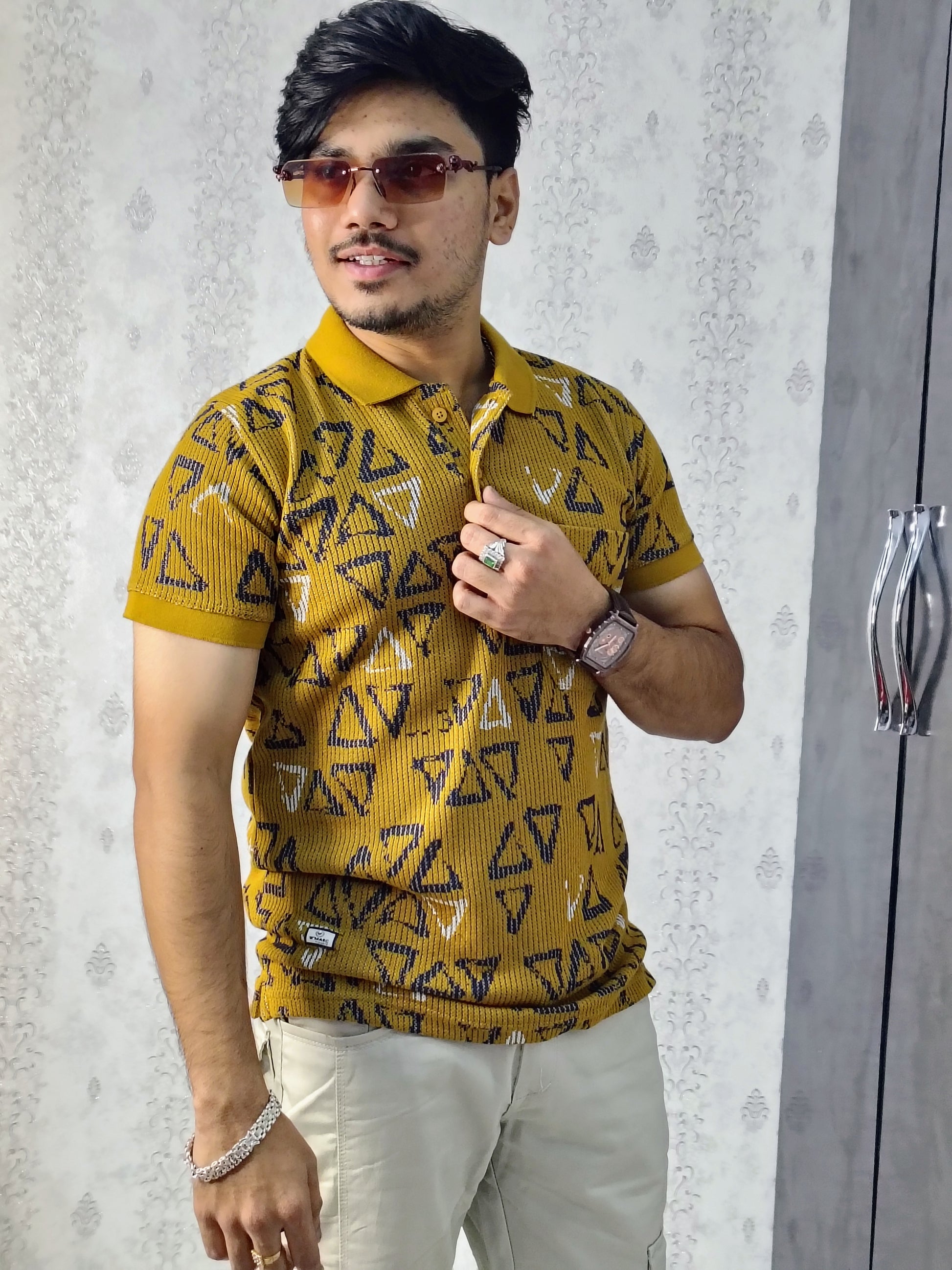 Ready to turn heads? This mustard yellow polo isn't your average tee—it's a confidence booster wrapped in bold color and striking prints. Designed for the guy who knows that great style doesn't mean playing it safe, this smart-casual essential pairs effortlessly with jeans, chinos, or shorts. The vibrant hue brings instant energy to any outfit, while the printed details add that extra dash of personality. Comfortable enough for everyday wear yet polished enough for casual outings, this polo proves you can be both relaxed and refined. Stand out from the crowd without trying too hard!